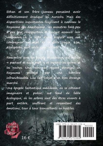 Ethan et son fr?re jumeau pensaient avoir d?finitivement ?radiqu? les Aurochs. Mais des disparitions inqui?tantes fragilisent ? nouveau le Royaume des Anastasiens? les monstres font peu ? peu leur r?apparition et veulent assouvir leur vengeance. A la suite d?une dispute avec son compagnon au sujet de la belle Vania, Lisa, d?sesp?r?e, part seule dans la for?t. Rencontre avec un peuple myst?rieux, qui habite ? partout et nulle part ? et investit les arbres et les roches. Une reine au regard ?trange, un Royaume prot?g? par une barri?re infranchissable. Lisa fait l?objet d?un bien ?trange march?. Une ?pop?e fantastique m?di?vale, o? se c?toient imaginaire et po?sie, sur fond de fable ?cologique, o? les arbres sont des ?tres vivants ? part enti?re, souffrant et ressentant des ?motions, tour ? tour bienveillants ou hostiles.