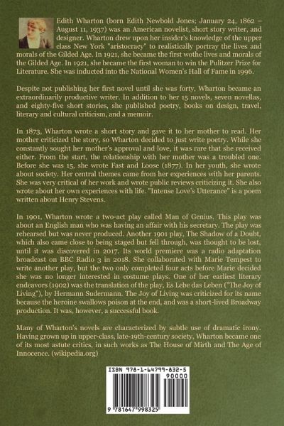 Edith Wharton (born Edith Newbold Jones; January 24, 1862 - August 11, 1937) was an American novelist, short story writer, and designer. Wharton drew upon her insider's knowledge of the upper class New York "aristocracy" to realistically portray the lives and morals of the Gilded Age. In 1921, she became the first woman to win the Pulitzer Prize for Literature. She was inducted into the National Women's Hall of Fame in 1996. Despite not publishing her first novel until she was forty, Wharton became an extraordinarily productive writer. In addition to her 15 novels, seven novellas, and eighty-five short stories, she published poetry, books on design, travel, literary and cultural criticism, and a memoir. In 1873, Wharton wrote a short story and gave it to her mother to read. Her mother criticized the story, so Wharton decided to just write poetry. While she constantly sought her mother's approval and love, it was rare that she received either. From the start, the relationship with her mother was a troubled one. Before she was 15, she wrote Fast and Loose (1877). In her youth, she wrote about society. Her central themes came from her experiences with her parents. She was very critical of her work and wrote public reviews criticizing it. She also wrote about her own experiences with life. "Intense Love's Utterance" is a poem written about Henry Stevens. In 1901, Wharton wrote a two-act play called Man of Genius. This play was about an English man who was having an affair with his secretary. The play was rehearsed but was never produced. Another 1901 play, The Shadow of a Doubt, which also came close to being staged but fell through, was thought to be lost, until it was discovered in 2017. Its world premiere was a radio adaptation broadcast on BBC Radio 3 in 2018. She collaborated with Marie Tempest to write another play, but the two only completed four acts before Marie decided she was no longer interested in costume plays. One of her earliest literary endeavors (1902) was the translation of the play, Es Lebe das Leben ("The Joy of Living"), by Hermann Sudermann. The Joy of Living was criticized for its name because the heroine swallows poison at the end, and was a short-lived Broadway production. It was, however, a successful book. Many of Wharton's novels are characterized by subtle use of dramatic irony. Having grown up in upper-class, late-19th-century society, Wharton became one of its most astute critics, in such works as The House of Mirth and The Age of Innocence. (wikipedia.org)