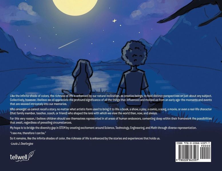 Like the infinite-shade of colors, the richness of life is enhanced by our natural inclination, as creative beings, to hold distinct perspectives on just about any subject. Collectively, however, I believe we all appreciate the profound significance of all the things that influenced and molded us from an early age-the moments and events that are weaved intricately into our memories. Who amongst us cannot recall a story, no matter what artistic form used to bring it to life: a book, a show, a play, a comic, a song, a movie, or even a real-life character (that family member, teacher, coach, or friend) who shaped the lens with which we view the world then, now, and always. For this very reason, I believe children should see themselves represented in all areas of human endeavors, cementing deep within their framework the possibilities that await, regardless of prevailing circumstances. My hope is to bridge the diversity gap in STEM by creating excitement around Science, Technology, Engineering, and Math through diverse representation. "I see me, therefore I can be." So it remains, like the infinite shades of color, the richness of life is enhanced by the stories and experiences that holds us. -Louis J. Desforges