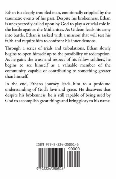 Ethan is a deeply troubled man, emotionally crippled by the traumatic events of his past. Despite his brokenness, Ethan is unexpectedly called upon by God to play a crucial role in the battle against the Midianites. As Gideon leads his army into battle, Ethan is tasked with a mission that will test his faith and require him to confront his inner demons. Through a series of trials and tribulations, Ethan slowly begins to open himself up to the possibility of redemption. As he gains the trust and respect of his fellow soldiers, he begins to see himself as a valuable member of the community, capable of contributing to something greater than himself. In the end, Ethan's journey leads him to a profound understanding of God's love and grace. He discovers that despite his brokenness, he is still capable of being used by God to accomplish great things and bring glory to his name.