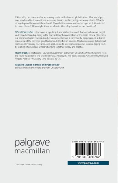 Notes on Contributors Introduction 1. Introduction; Thom Brooks PART I: HISTORICAL ROOTS 2. The Metaphysics and Ethics of T. H. Green's Idea of Persons and Citizens; Rex Martin 3. Beyond Dualistic Constructions of Citizenship: T. H. Green's Idea of Ethical Citizenship as Mutual Membership; Avital Simhony 4. Idealism and Ethical Citizenship; Leslie Armour 5. Mill, Moral Suasion, and Coercion; Greg Claeys PART II: CONTEMPORARY RELEVANCE 6. Ethical Citizenship, the Liberalism of the British Idealists, and Diverse Societies; Robert Kocis 7. Ethical Citizenship and the Stakeholder Society; Thom Brooks 8. British Idealism and Education for Citizenship; William J. Mander 9. Rawls, Collingwood, and the Roles of Political Philosophy for Ethical Citizenship; Owen James Fellows PART III: INTERNATIONAL CONTEXT 10. 'Who is My Neighbour?' T. H. Green and the Possibility of Cosmopolitan Ethical Citizenship; Matthew Hann 11. Do We Owe More to Fellow Nationals? The Particular and Universal Ethics of Bosanquet's General Will and Miller's Public Culture; Maria Dimova-Cookson 12. Idealism, the Common Good and Environmental Virtues; James Connelly Index