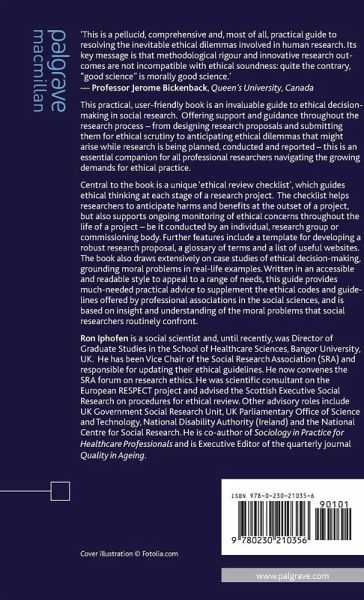 'Drawing on a range of knowledge and experience, Iphofen gives a fairly comprehensive view of a rapidly developing field. This is more than an 'ethics primer' for social scientists, but it also avoids too much specialised analysis. It deserves a place in most university libraries and, if Palgrave brings it out in paperback, the shelves of social scientists with specific interest or responsibility for ethics and those whose research tends to raise ethical challenges.'- Nathan Emmerich, PhD candidate in the School of Sociology, Social Policy and Social Work, Queens University Belfast and scholar-reviewer forthe THE