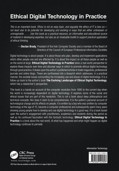 Digital technology is about people. It is about those who plan, develop and implement applications which other people use and are affected by. It is about the impact on all these people as well as on the world at large. Ethical Digital Technology in Practice takes a real-world perspective to explore these impacts over time and discover ways in which to promote ethical digital technology through good practice. It draws upon the author's published articles in trade magazines, professional journals and online blogs. These are synthesised into a blueprint which addresses, in a practical manner, the societal issues surrounding the increasing use and abuse of digital technology. It is a follow-up book to the author's book The Evolving Landscape of Ethical Digital Technology, which has a researcher's perspective.