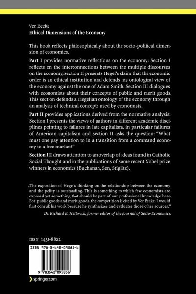 From the reviews: "This book draws heavily on Hegel to outline ethical dimensions of the economy. ... The book would be most worthwhile for readers who are interested an argument that Hegel's ideas are consistent with standard public goods theory, and with Musgrave's concept of merit goods. ... the book may be more appealing to philosophers who are interested in building a bridge between economics and philosophy to consider the role of government in the economy." (Randall G. Holcombe, Public Choice, Vol. 138, 2009) "This book is a philosophical and ethical reflection on economics. ... each chapter is preceded by an orienting abstract that points out the major argument that the chapter develops. ... an excellent reading for faculty discussion groups bringing together the social sciences and the humanities." (John Donovan, The Reviews of Metaphysics, Vol. LXIII (2), December, 2009)