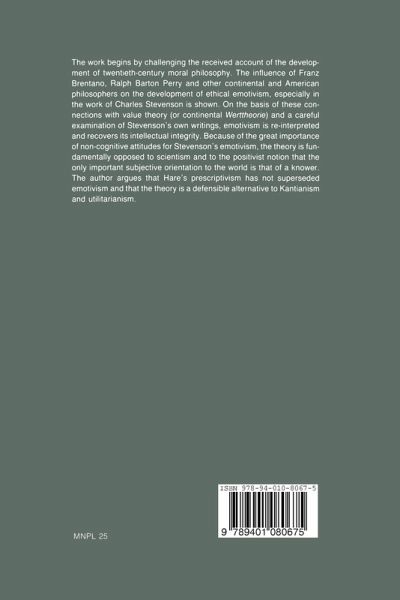 The primary contributions of this work are in three overlapping categories: (i) the history of ideas (and in particular the history of the idea of value) and moral philosophy in both continental and Anglo-American traditions, (ii) the identification and interpretation of ethical emotivism as one of the major twentieth-century ethical theories, and (iii) the evolution of a philosophically viable form of ethical emotivism as an alternative to utilitarianism and Kantianism. In addition, along the way, many particular points are touched upon, e. g. , the relation of Hume to Stevenson and emotivism, the facti value distinction, and human emotional and social nature. The work begins by challenging the received account of the development of twentieth-century moral philosophy, i. e. , the account that occurs in all the recognized historical books (such as G. c. Kerner, The Revolution in Ethical Theory, Oxford, 1966; G. 1. Warnock, Contemporary Moral Philosophy, London, 1967; W. D. Hudson, Modern Moral Philosophy, London, 1967; Mary Warnock, Ethics Since 1900, 3rd ed. , Oxford, 1978; and W. D. Hudson, A Century of Moral Philosophy, New York, 1980). This received account is not only the property of scholars of the history of recent moral philosophy but is also generally assumed by philosophers themselves, and is repeated quite uncritically in the literature at large.