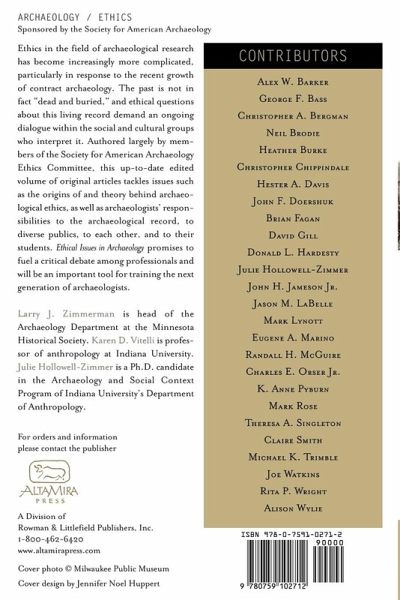 [a] fine volume...Coverage of current and emergent topics is well conceived...Essential. -- S.R. Martin, Michigan Technological Un iversity CHOICE This volume provides a valuable guidebook for both the uninitiated and veteran...an engaging read that forced me to confront some of my own ethical positions. It would be a valuable read for the professional and student alike. -- Jason D. Gillespie, Department of Anthropology, University of Alberta Canadian Journal Of Archaeology, Vol.28, 2004, Issue 1 This volume is earnestly recommended because it significantly expands and deepens our understanding of archaeological ethics, even as it challenges professionals and students alike to contemplate the conduct and core values of the discipline. -- Chip Colwell-Chanthaphonh Indigenous Nations Studies Journal Now that ethics have assumed a central role in archaeology, students, teachers, and practicing archaeologists, as well as those with an interest in and concern for the past, will find this book to be a valuable resource. Journal Of Field Archaeology This volumn is a closely edited, well-planned overview of archaeological ethics, written under the auspices of the Society for American Archaeology but including contributions from far beyond the USA. Oxbow Book News, Vol. 57, Autumn 2003