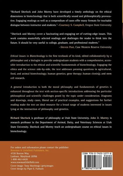 Richard Sherlock is professor of philosophy at Utah State University. John D. Morrey is research professor in the Department of Animal, Dairy, and Veterinary Sciences at Utah State University. Professors Sherlock and Morrey team teach an undergraduate course on ethical issues in biotechnology at Utah State.