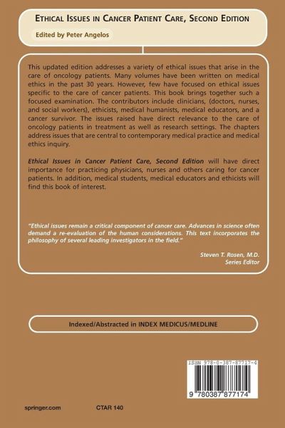 Ethical Issues in Cancer Patient Care, Second Edition will have direct importance for practicing physicians, nurses and others caring for cancer patients. In addition, medical students, medical educators and ethicists will find this book of interest.