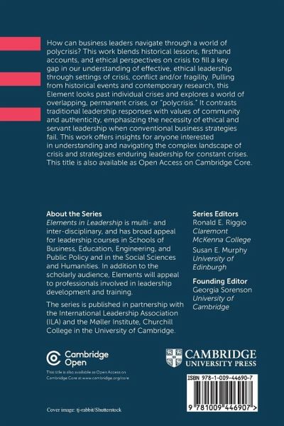 This Element blends historical lessons, firsthand accounts, and ethical perspectives on crisis to fill gaps in our understandings of ethical leadership through crisis, conflict and/or fragility. It emphasizes the necessity of ethical and servant leadership attributes. This title is also available as Open Access on Cambridge Core.