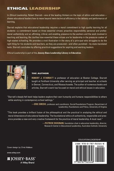 ETHICAL LEADERSHIP In Ethical Leadership, Robert Starratt--one of the leading thinkers on the topic of ethics and education--shows educational leaders how to move beyond mere technical efficiency in the delivery and performance of learning. Starratt explains that educational leadership requires a moral commitment to high quality learning for all students--a commitment based on three essential virtues: proactive responsibility; personal and professional authenticity; and an affirming, critical, and enabling presence to the workers and the work involved in teaching and learning. He clarifies how essential these virtues are for leadership in the pressure-cooker of high-stakes schooling. He provides a vivid illustration in the story of a principal who struggles to do the right thing for his students and teachers, as they are pressured--and often punished--by state mandated tests. Starratt concludes by offering practical suggestions for aspiring and working leaders. Ethical Leadership is part of the Jossey-Bass Leadership Library in Education. > --ERIC BREDO, professor and coordinator, Social Foundations Program, Department of Leadership, Foundations and Policy, University of Virginia > --PATRICK DUIGNAN, foundation chair in education leadership, director, Research Center in Educational Leadership, Australian Catholic University