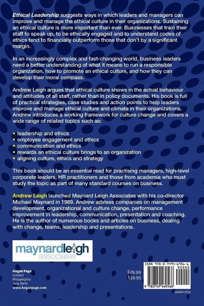 Ethical Leadership shines a light on the role of both culture and ethics in organizations by making the issues more transparent, accessible and above all, connected. Business leaders are now accountable for showing that they have the correct ethical policies and culture in place. Andrew Leigh focuses on the fact that ethical culture is manifest in the actual behaviour and attitudes of all staff, rather than in policy documents. His book is full of practical strategies, case studies and action points which will help leaders to improve and manage ethical culture and climate in their organizations.