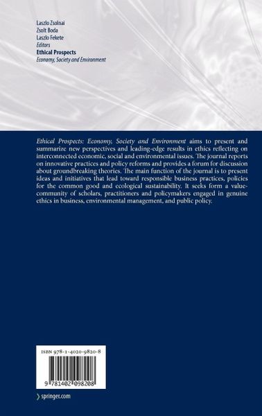 Ethical Prospects: Economy, Society, and Environment aims to present and summarize new perspectives and leading-edge results in ethics reflecting on interconnected economic, social and environmental issues. The yearbook reports on innovative practices and policy reforms and provides a forum for discussion about groundbreaking theories. The main function of the yearbook is to present ideas and initiatives that lead toward responsible business practices, policies for the common good and ecological sustainability. It seeks to form a value-community of scholars, practitioners and policymakers engaged in genuine ethics in business, environmental management, and public policy.