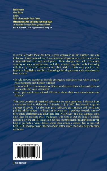 This book consists of sustained reflections on such questions. It derives from a workshop held at Melbourne University in July 2007 that brought together a group of people - for the most part, reflective practitioners and moral and political philosophers - to discuss such questions. It explores honestly some of the current challenges and dilemmas that INGOs face, and also suggests some new ideas for meeting these challenges. Our hope is that the kind of explicit reflection on the ethical issues INGOs face exemplified in this publication will help to promote a wider debate about these issues, a debate that in turn will help INGO managers and others to make better, wiser, more ethically informed decisions.