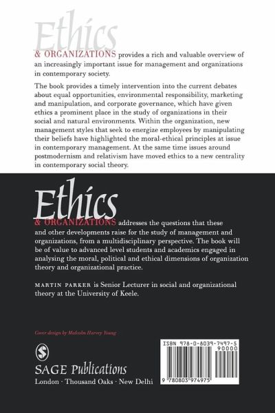Introduction - Martin Parker Ethics, The Very Idea? PART ONE: THEORIES Beyond the Fringe? The Strange State of Business Ethics - Tom Sorell Marxism, Capitalism and Ethics - Edward Wray-Bliss and Martin Parker Who Do You Think You Are? Feminism, Work, Ethics and Foucault - Joanna Brewis Towards a New Ethics? The Contributions of Poststructuralism and Posthumanism - Hugh Willmott Business Ethics - Hugo Letiche (In-)Justice and (Anti-)Law - Reflections on Derrida, Bauman and Lipovetsky PART TWO: PRACTICES Is HRM Ethical? Can HRM Be Ethical? - Karen Legge Marketing and Moral Indifference - John Desmond Ethics and Accounting - Rolland Munro The Dual Technologies of Self Governance and Regulation - Glenn Morgan An Institutionalist Approach to Ethics and Organizations The Natural Environment, Organization and Ethics - Stephen Fineman PART THREE: IMPLICATIONS Ethical Codes and Moral Communities - Tony J Watson The Gunlaw Temptation, the Simon Solution and the David Dilemma Management Education - Peter Anthony Ethics versus Morality Against Ethics - Martin Parker