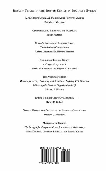 This book argues that ethical business behavior can be enhanced by taking fuller account of human nature, particularly with respect to the need for creating relatively small communities within the corporation. Timothy Fort discusses this premise in relation to the three predominant theories of business ethics--stakeholder, virtue, and contract. Drawing heavily from philosophy, he analyzes traditional business ethics and legal theory. Overall, his work provides a good example of how to integrate normative and empirical studies in business ethics, a task that often receives substantial discussion in academic journals.