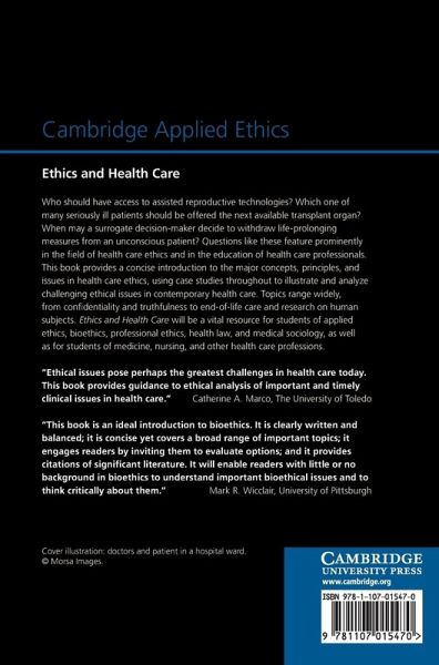 Who should have access to assisted reproductive technologies? Which one of many seriously ill patients should be offered the next available transplant organ? When may a surrogate decision maker decide to withdraw life-prolonging measures from an unconscious patient? Questions like these feature prominently in the field of health care ethics and in the education of health care professionals. This book provides a concise introduction to the major concepts, principles and issues in health care ethics, using case studies throughout to illustrate and analyse challenging ethical issues in contemporary health care. Topics range widely, from confidentiality and truthfulness to end-of-life care and research on human subjects. Ethics and Health Care will be a vital resource for students of applied ethics, bioethics, professional ethics, health law and medical sociology, as well as students of medicine, nursing and other health care professions.