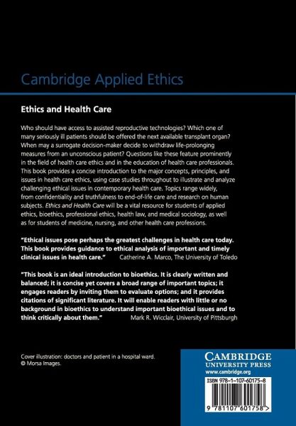 Who should have access to assisted reproductive technologies? Which one of many seriously ill patients should be offered the next available transplant organ? When may a surrogate decision maker decide to withdraw life-prolonging measures from an unconscious patient? Questions like these feature prominently in the field of health care ethics and in the education of health care professionals. This book provides a concise introduction to the major concepts, principles and issues in health care ethics, using case studies throughout to illustrate and analyse challenging ethical issues in contemporary health care. Topics range widely, from confidentiality and truthfulness to end-of-life care and research on human subjects. Ethics and Health Care will be a vital resource for students of applied ethics, bioethics, professional ethics, health law and medical sociology, as well as students of medicine, nursing and other health care professions.