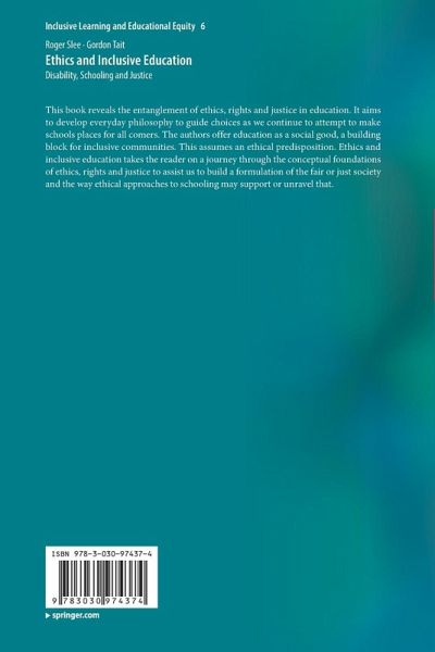 This book reveals the entanglement of ethics, rights and justice in education. It aims to develop everyday philosophy to guide choices as we continue to attempt to make schools places for all comers. The authors offer education as a social good, a building block for inclusive communities. This assumes an ethical predisposition. Ethics and inclusive education takes the reader on a journey through the conceptual foundations of ethics, rights and justice to assist us to build a formulation of the fair or just society and the way ethical approaches to schooling may support or unravel that.