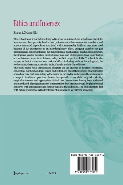 This collection of 21 articles is designed to serve as a state-of-the art reference book for intersexuals, their parents, health care professionals, ethics committee members, and anyone interested in problems associated with intersexuality. It fills an important need because of its uniqueness as an interdisciplinary effort, bringing together not just urologists and endocrinologists, but gynecologists, psychiatrists, psychologists, lawyers, theologians, gender theorists, medical historians, and philosophers. Most contributors are well-known experts on intersexuality in their respective fields. The book is also unique in that it is also an international effort, including authors from England, the Netherlands, Germany, Australia, India, Canada and the United States.