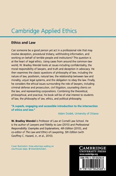 Can someone be a good person yet act in a professional role that may involve deception, procedural trickery, withholding information, and working on behalf of terrible people and institutions? This question is at the heart of legal ethics. Using cases from around the common-law world, W. Bradley Wendel looks at issues including confidentiality, the moral responsibility of lawyers, and truth and deception in advocacy. He then examines the classic questions of philosophy of law, including the nature of law, positivism, natural law, the relationship between law and morality, unjust legal systems, and the obligation to obey the law. Finally, he considers the ethical issues surrounding the role of lawyers, including criminal defense and prosecution, civil litigation, counseling clients on the law, and representing corporations. Combining the theoretical, philosophical, and practical, his book will be of vital interest to students of law, the philosophy of law, ethics, and political philosophy.