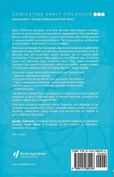 Peter Moss is Professor in Early Childhood Provision at the Institute of Education, University of London. Gunilla Dahlberg is Professor at Stockholm Institute of Education. She is the leading exponent of the application of post-structural theory to the field of early childhood.