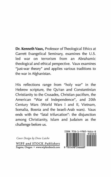 Dr. Kenneth Vaux, Professor of Theological Ethics at Garrett Evangelical Seminary, examines the U.S. led war on terrorism from an Abrahamic theological and ethical perspective. Vaux examines just-war theory and applies various traditions to the current war in Afghanistan. His reflections range from holy war in the Hebrew scripture, the Qu'ran and Constantinian Christianity to the Crusades, Christian pacifism, the American War of Independence, and 20th Century Wars (World Wars I and II, Vietnam, Somalia, Bosnia and the Israeli-Arab wars). Vaux ends with the fatal trifurcation: the disjunction among Christianity, Islam and Judaism as the challenge before us.