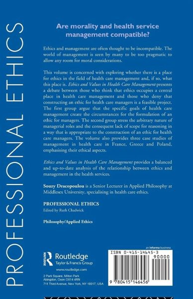 Healthcare management is a burning issue at the moment and this timely and topical book explores the ethical issues that arise in the context of healthcare management. Among the topics discussed are healthcare rationing, including an exposition and defence of the Qaly criterion of healthcare rationing and an examination of the contribution that ethical theory can make to the rationing debate, an analysis of how managers can be preoccupied with the goals of management and the values of doctors simultaneously, an outline of potential guidelines towards formulating a cohesion of healthcare management and ethical management and a reassessment of the role of healthcare professionals. Ethics and Values in Healthcare Management provides a valuable and much needed analysis of the ethical problems associated with healthcare management and offers some solutions towards ameliorationg healthcare organisations.