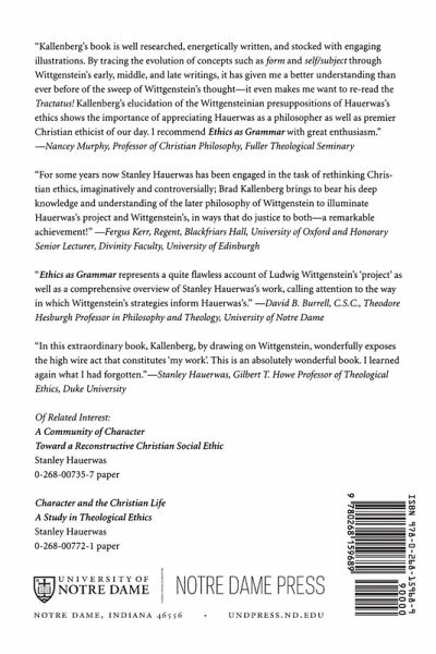 Wittgenstein, one of the most influential, and yet widely misunderstood, philosophers of our age, confronted his readers with aporias-linguistic puzzles-as a means of countering modern philosophical confusions over the nature of language without replicating the same confusions in his own writings. In Ethics as Grammar, Brad Kallenberg uses the writings of theological ethicist Stanley Hauerwas as a foil for demonstrating how Wittgenstein's method can become concrete within the Christian tradition. Kallenberg shows that the aesthetic, political, and grammatical strands epitomizing Hauerwas's thought are the result of his learning to do Christian ethics by thinking through Wittgenstein.