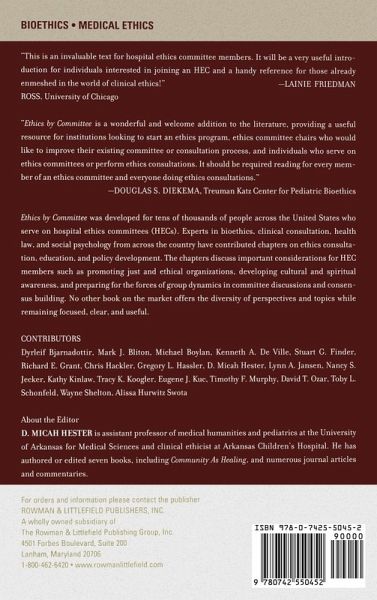 While tens of thousands of people across the United States serve on hospital and other healthcare ethics committees (HECs), almost no carefully prepared educational material exists for HEC members. Ethics by Committee is a one volume collection of chapters developed exclusively for this educational purpose. Experts in bioethics, clinical consultation, health law, and social psychology from across the country contribute chapters on ethics consultation, education, and policy development.