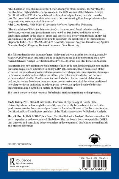"The 4thedition of Ethics for Behavior Analysts is a must read for all behavior analysts. Professors, students, and practitioners have relied on Drs. Bailey and Burch as well-established experts in the areas of ethics and professional behavior in the field of ABA for years and will be well-served continuing to do so with the latest edition to this textbook."