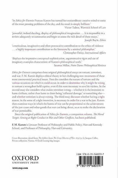 Ethics for Enemies comprises three original essays on highly contentious issues in practical moral philosophy. F. M. Kamm presents powerful arguments about the concept and morality of torture; what makes terrorism wrong and whether it is always wrong; and whether the right motivation and the proportionality of harms to good can make war just.
