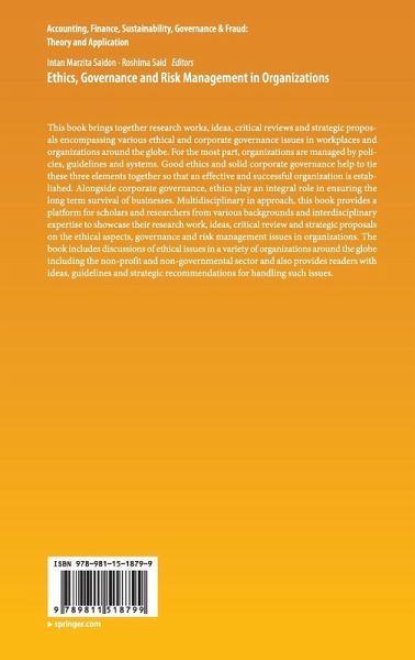 This book brings together research works, ideas, critical reviews and strategic proposals encompassing various ethical and corporate governance issues in workplaces and organizations around the globe. For the most part, organizations are managed by policies, guidelines and systems. Good ethics and solid corporate governance help to tie these three elements together so that an effective and successful organization is established. Alongside corporate governance, ethics play an integral role in ensuring the long term survival of businesses. Multidisciplinary in approach, this book provides a platform for scholars and researchers from various backgrounds and interdisciplinary expertise to showcase their research work, ideas, critical review and strategic proposals on the ethical aspects, governance and risk management issues in organizations. The book includes discussions of ethical issues in a variety of organizations around the globe including the non-profit and non-governmental sector and also provides readers with ideas, guidelines and strategic recommendations for handling such issues.