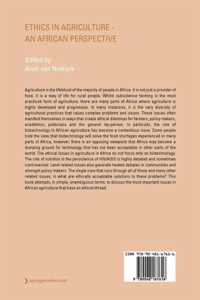 Agriculture is the lifeblood of the majority of people in Africa. It is not just a provider of food, it is a way of life for rural people. Whilst subsistence farming is the most practiced form of agriculture, there are many parts of Africa where agriculture is highly developed and progressive. In many instances it is the very diversity of agricultural practices that raises complex problems and issues. These issues often manifest themselves in ways that create ethical dilemmas for farmers, policy-makers, academics, politicians and the general lay-person. In particular, the role of biotechnology in African agriculture has become a contentious issue. Some people hold the view that biotechnology will solve the food shortages experienced in many parts of Africa, however, there is an opposing viewpoint that Africa may become a dumping ground for technology that has not been acceptable in other parts of the world. The ethical issues in agriculture in Africa do not focus only on biotechnology. The role of nutrition in the persistence of HIV/AIDS is highly debated and sometimes controversial. Land-related issues also generate heated debates in communities and amongst policy-makers. The single core that runs through all of these and many other related issues is, what are ethically acceptable solutions to these problems? This book attempts, in simple, unambiguous terms, to discuss the most important issues in African agriculture that have an ethical thread.