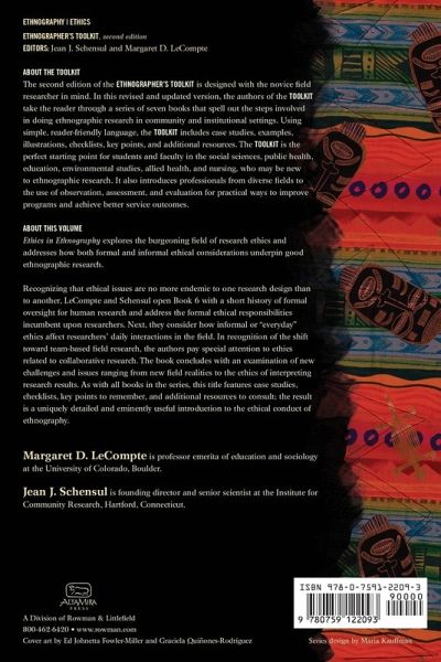 This is Book 6 of 7 in the Ethnographer's Toolkit, Second Edition. Ethics in Ethnography explores the burgeoning field of research ethics and addresses how both formal and informal ethical considerations underpin good ethnographic research. Coming from the position that no particular research design is more or less prone to generate ethical issues, LeCompte and Schensul open this volume with a short history of formal oversight for human research and address the formal ethical responsibilities incumbent upon researchers. Next, they consider how informal or "everyday" ethics affect researchers' daily interactions in the field. In recognition of the shift toward team-based field research, the authors pay special attention to ethics related to collaborative research. The book concludes with an examination of new challenges and issues ranging from new field realities to the ethics of interpreting research results. As with all books in the series, this title features case studies, checklists, key points to remember, and additional resources to consult; the result is a uniquely detailed and eminently useful introduction to the ethical conduct of ethnography. Other books in the set: Book 1: Designing and Conducting Ethnographic Research: An Introduction, Second Edition by Margaret D. LeCompte and Jean J. Schensul 9780759118690 Book 2: Initiating Ethnographic Research: A Mixed Methods Approach by Stephen L. Schensul, Jean J. Schensul, and Margaret D. LeCompte 9780759122017 Book 3: Essential Ethnographic Methods: A Mixed Methods Approach, Second Edition by Jean J. Schensul and Margaret D. LeCompte 9780759122031 Book 4: Specialized Ethnographic Methods: A Mixed Methods Approach edited by Jean J. Schensul and Margaret D. LeCompte 9780759122055 Book 5: Analysis and Interpretation of Ethnographic Data: A Mixed Methods Approach, Second Edition by Margaret D. LeCompte and Jean J. Schensul 9780759122079 Book 7: Ethnography in Action: A Mixed Methods Approach by Jean J. Schensul and Margaret D. LeCompte 9780759122116