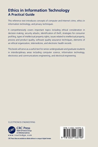 This reference text covers ethics in information technology, intellectual property, and privacy techniques. It will serve as a useful text for senior undergraduate and graduate students in interdisciplinary areas including computer science, information technology, electronics and communication engineering, and electrical engineering.
