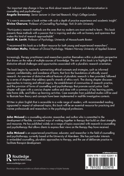 Increasingly, therapy practitioners and researchers position themselves within a pluralistic perspective that draws on the value of multiple sources of knowledge. The aim of this book is to highlight the distinctive ethical challenges and opportunities associated with a pluralistic research orientation.