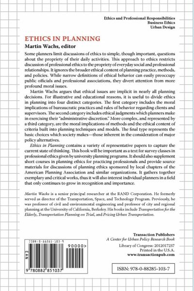 Some planners limit discussions of ethics to simple, though important, questions about the propriety of their daily activities. This approach to ethics restricts discussion of professional ethics to the propriety of everyday social and professional relationships. It ignores the broader ethical content of planning practice, methods, and policies. While narrow definitions of ethical behavior can easily preoccupy public officials and professional associations, they divert attention from more profound moral issues.Martin Wachs argues that ethical issues are implicit in nearly all planning decisions. For illustrative and educational reasons, it is useful to divide ethics in planning into four distinct categories. The first category includes the moral implications of bureaucratic practices and rules of behavior regarding clients and supervisors. The second category includes ethical judgments which planners make in exercising their "administrative discretion." More complex, and represented by a third category, are the moral implications of methods and the ethical content of criteria built into planning techniques and models. The final type represents the basic choices which society makes - those inherent in the consideration of major policy alternatives.Ethics in Planning contains a variety of representative papers to capture the current state of thinking. This book will be important as a text for survey classes in professional ethics given by university planning programs. It should also supplement short courses in planning ethics for practicing professionals and provide source materials for discussions of planning ethics sponsored by local chapters of the American Planning Association and similar organizations. It gathers together exemplary and critical works, thus it will also interest individual planners in a field that only continues to grow in recognition and importance.