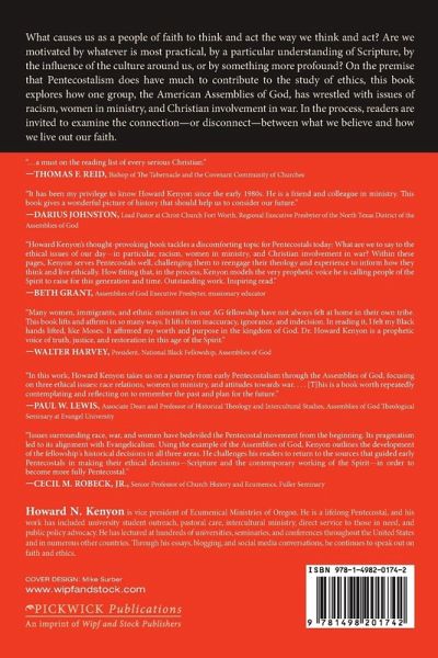 What causes us as a people of faith to think and act the way we think and act? Are we motivated by whatever is most practical, by a particular understanding of Scripture, by the influence of the culture around us, or by something more profound? On the premise that Pentecostalism does have much to contribute to the study of ethics, this book explores how one group, the American Assemblies of God, has wrestled with issues of racism, women in ministry, and Christian involvement in war. In the process, readers are invited to examine the connection--or disconnect--between what we believe and how we live out our faith.