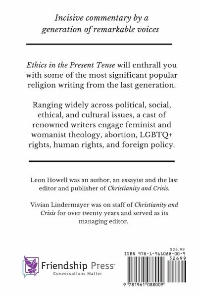 Ethics in the Present Tense will enthrall you with some of the most significant popular religion writing from the last generation. Ranging widely across political, social, ethical, and cultural issues, a cast of renowned writers engage feminist and womanist theology, abortion, LGBTQ+ rights, human rights, and foreign policy.
