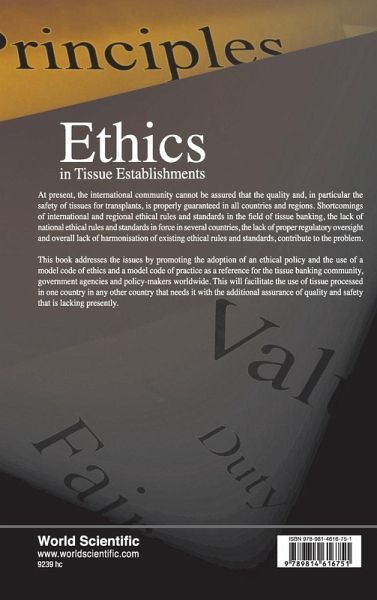 At present, the international community cannot be assured that the quality and, in particular the safety of tissues for transplants, is properly guaranteed in all countries and regions. Shortcomings of international and regional ethical rules and standards in the field of tissue banking, the lack of national ethical rules and standards in force in several countries, the lack of proper regulatory oversight and overall lack of harmonisation of existing ethical rules and standards, contribute to the problem. This book addresses the issues by promoting the adoption of an ethical policy and the use of a model code of ethics and a model code of practice as a reference for the tissue banking community, government agencies and policy-makers worldwide. This will facilitate the use of tissue processed in one country in any other country that needs it with the additional assurance of quality and safety that is lacking presently.