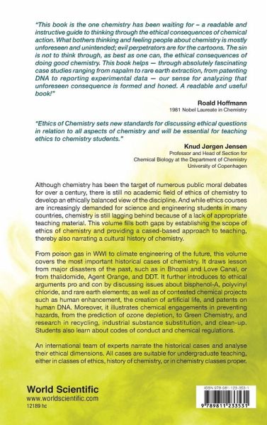 Although chemistry has been the target of numerous public moral debates for over a century, there is still no academic field of ethics of chemistry to develop an ethically balanced view of the discipline. And while ethics courses are increasingly demanded for science and engineering students in many countries, chemistry is still lagging behind because of a lack of appropriate teaching material. This volume fills both gaps by establishing the scope of ethics of chemistry and providing a cased-based approach to teaching, thereby also narrating a cultural history of chemistry. From poison gas in WWI to climate engineering of the future, this volume covers the most important historical cases of chemistry. It draws lesson from major disasters of the past, such as in Bhopal and Love Canal, or from thalidomide, Agent Orange, and DDT. It further introduces to ethical arguments pro and con by discussing issues about bisphenol-A, polyvinyl chloride, and rare earth elements; as well as of contested chemical projects such as human enhancement, the creation of artificial life, and patents on human DNA. Moreover, it illustrates chemical engagements in preventing hazards, from the prediction of ozone depletion, to Green Chemistry, and research in recycling, industrial substance substitution, and clean-up. Students also learn about codes of conduct and chemical regulations. An international team of experts narrate the historical cases and analyse their ethical dimensions. All cases are suitable for undergraduate teaching, either in classes of ethics, history of chemistry, or in chemistry classes proper.