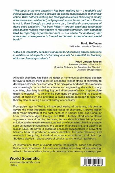 Although chemistry has been the target of numerous public moral debates for over a century, there is still no academic field of ethics of chemistry to develop an ethically balanced view of the discipline. And while ethics courses are increasingly demanded for science and engineering students in many countries, chemistry is still lagging behind because of a lack of appropriate teaching material. This volume fills both gaps by establishing the scope of ethics of chemistry and providing a cased-based approach to teaching, thereby also narrating a cultural history of chemistry. From poison gas in WWI to climate engineering of the future, this volume covers the most important historical cases of chemistry. It draws lesson from major disasters of the past, such as in Bhopal and Love Canal, or from thalidomide, Agent Orange, and DDT. It further introduces to ethical arguments pro and con by discussing issues about bisphenol-A, polyvinyl chloride, and rare earth elements; as well as of contested chemical projects such as human enhancement, the creation of artificial life, and patents on human DNA. Moreover, it illustrates chemical engagements in preventing hazards, from the prediction of ozone depletion, to Green Chemistry, and research in recycling, industrial substance substitution, and clean-up. Students also learn about codes of conduct and chemical regulations. An international team of experts narrate the historical cases and analyse their ethical dimensions. All cases are suitable for undergraduate teaching, either in classes of ethics, history of chemistry, or in chemistry classes proper.