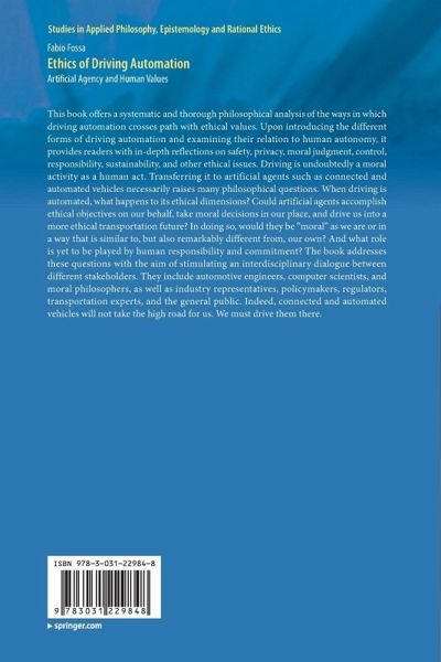 This book offers a systematic and thorough philosophical analysis of the ways in which driving automation crosses path with ethical values. Upon introducing the different forms of driving automation and examining their relation to human autonomy, it provides readers with in-depth reflections on safety, privacy, moral judgment, control, responsibility, sustainability, and other ethical issues. Driving is undoubtedly a moral activity as a human act. Transferring it to artificial agents such as connected and automated vehicles necessarily raises many philosophical questions. When driving is automated, what happens to its ethical dimensions? Could artificial agents accomplish ethical objectives on our behalf, take moral decisions in our place, and drive us into a more ethical transportation future? In doing so, would they be "moral" as we are or in a way that is similar to, but also remarkably different from, our own? And what role is yet to be played by human responsibility and commitment? The book addresses these questions with the aim of stimulating an interdisciplinary dialogue between different stakeholders. They include automotive engineers, computer scientists, and moral philosophers, as well as industry representatives, policymakers, regulators, transportation experts, and the general public. Indeed, connected and automated vehicles will not take the high road for us . We must drive them there.