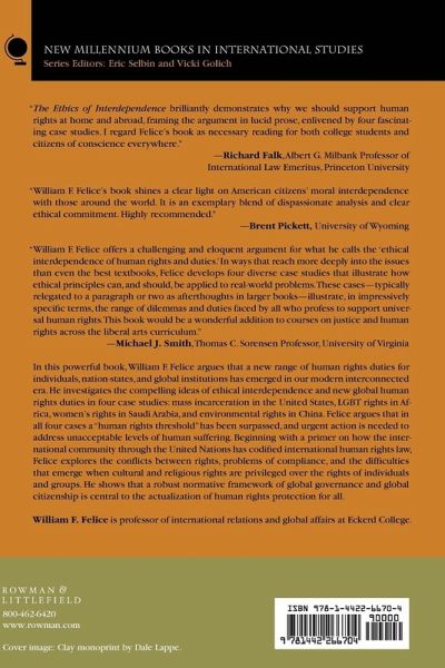 This powerful book explores new global human rights duties through four case studies: mass incarceration in the United States, LGBT rights in Africa, womenà â â s rights in Saudi Arabia, and environmental rights in China. William F. Felice presents a à â Å human rights thresholdà â  to identify unacceptable levels of human suffering that require urgent action.