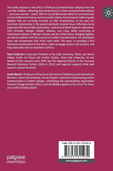 This book proposes a new Ethics of Political Commemoration adapted from the Just War tradition, reflecting that remembrance is often conducted with political - and even coercive - intent. With its Ius ad Memoriam (what to commemorate) and Ius in Memoria (how to commemorate) criteria, the framework looks to guide debates that are currently inchoate so that remembrance of the past can transform relationships in the present and build a shared future. Offering a moral argument with memorable illustrations, Gutbrod and Wood draw on experiences from Armenia, Georgia, Ireland, Lebanon, and Libya, while connecting to mainstream debates in Western Europe and the United States. Bringing together an ethical tradition with the practice of conflict transformation, the framework fuses two perspectives that enrich each other. The book, in providing a first systematic presentation of the ethics, seeks to engage citizens and scholars, and help those who work to transform conflicts.