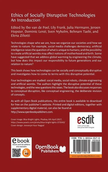 Technologies shape who we are, how we organize our societies and how we relate to nature. For example, social media challenges democracy; artificial intelligence raises the question of what is unique to humans; and the possibility to create artificial wombs may affect notions of motherhood and birth. Some have suggested that we address global warming by engineering the climate, but how does this impact our responsibility to future generations and our relation to nature?This book shows how technologies can be socially and conceptually disruptive and investigates how to come to terms with this disruptive potential.Four technologies are studied: social media, social robots, climate engineering and artificial wombs. The authors highlight the disruptive potential of these technologies, and the new questions this raises. The book also discusses responses to conceptual disruption, like conceptual engineering, the deliberate revision of concepts.