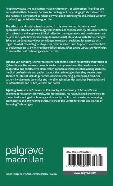 Acknowledgements Notes on Contributors Introduction; Enhancing Ethical Reflection in the Laboratory: How Soft Impacts Require Tough Thinking; Simone Van Der Burg and Tsjalling Swierstra 1. Which Focus for an Ethics in Nanotechnology Laboratories?; Bernadette Bensaude Vincent 2. Responsible Research and Development: Roles of Ethicists on the Lab Floor; Armin Grunwald 3. The Multiple Practices of Doing 'Ethics in the Lab' - A Mid-Level Perspective; Marianne Boenink 4. Technology Design as Experimental Ethics; Peter-Paul Verbeek 5. Co-Shaping the Life Story of a Technology; From Technological Ancestry to Visions of the Future; Simone Van Der Burg 6. Ethics on the Basis of Technological Choices; Xavier Guchet 7. Environmental Ethics in an Ecotoxicology Laboratory; Fern Wickson 8. The Promises of Emerging Diagnostics: From Scientists' Visions to the Lab Bench and Back; Federica Lucivero 9. Dramatic Rehearsal on the Societal Embedding of the Lithium Chip; Lotte Krabbenborg 10. Pervasive Normativity and Emerging Technologies; Arie Rip 11. Underdetermination and Overconfidence - Constructivism, Design Thinking, and the Ethics Politics of Research; Alfred Nordmann Index