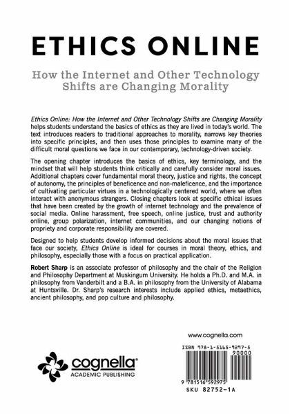 Ethics Online: How the Internet and Other Technology Shifts are Changing Morality helps students understand the basics of ethics as they are lived in today's world. The text introduces readers to traditional approaches to morality, narrows key theories into specific principles, and then uses those principles to examine many of the difficult moral questions we face in our contemporary, technology-driven society. The opening chapter introduces the basics of ethics, key terminology, and the mindset that will help students think critically and carefully consider moral issues. Additional chapters cover fundamental moral theory, justice and rights, the concept of autonomy, the principles of beneficence and non-maleficence, and the importance of cultivating particular virtues in a technologically centered world, where we often interact with anonymous strangers. Closing chapters look at specific ethical issues that have been created by the growth of internet technology and the prevalence of social media. Online harassment, free speech, online justice, trust and authority online, group polarization, internet communities, and our changing notions of propriety and corporate responsibility are covered. Designed to help students develop informed decisions about the moral issues that face our society, Ethics Online is ideal for courses in moral theory, ethics, and philosophy, especially those with a focus on practical application.
