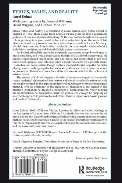 Ethics, Value, and Reality is a collection of essays written after Kolnai settled in England in 1955