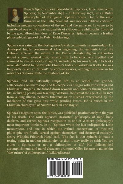 Baruch Spinoza (born Benedito de Espinosa, later Benedict de Spinoza; 24 November 1632 – 21 February 1677) was a Dutch philosopher of Portuguese Sephardi origin. One of the early thinkers of the Enlightenment and modern biblical criticism, including modern conceptions of the self and the universe, he came to be considered one of the great rationalists of 17th-century philosophy. Inspired by the groundbreaking ideas of René Descartes, Spinoza became a leading philosophical figure of the Dutch Golden Age. Spinoza was raised in the Portuguese-Jewish community in Amsterdam. He developed highly controversial ideas regarding the authenticity of the Hebrew Bible and the nature of the Divine. Jewish religious authorities issued a herem against him, causing him to be effectively expelled and shunned by Jewish society at age 23, including by his own family. His books were later added to the Catholic Church's Index of Forbidden Books. He was frequently called an "atheist" by contemporaries, although nowhere in his work does Spinoza refute the existence of God. Spinoza lived an outwardly simple life as an optical lens grinder, collaborating on microscope and telescope lens designs with Constantijn and Christiaan Huygens. He turned down rewards and honours throughout his life, including prestigious teaching positions. He died at the age of 44 in 1677 from a lung illness, perhaps tuberculosis or silicosis exacerbated by the inhalation of fine glass dust while grinding lenses. He is buried in the Christian churchyard of Nieuwe Kerk in The Hague. Spinoza's magnum opus, the Ethics, was published posthumously in the year of his death. The work opposed Descartes' philosophy of mind–body dualism, and earned Spinoza recognition as one of Western philosophy's most important thinkers. In it, "Spinoza wrote the last indisputable Latin masterpiece, and one in which the refined conceptions of medieval philosophy are finally turned against themselves and destroyed entirely". Georg Wilhelm Friedrich Hegel said, "The fact is that Spinoza is made a testing-point in modern philosophy, so that it may really be said: You are either a Spinozist or not a philosopher at all." His philosophical accomplishments and moral character prompted Gilles Deleuze to name him "the 'prince' of philosophers." (wikipedia.org)
